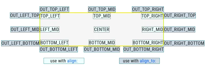 OUT_(see picture below). - align_to (Optional, list): Alignment of the widget relative to another widget on the same level. Note that resizing the screen or a widget containing or referred by this directive will not update the position.